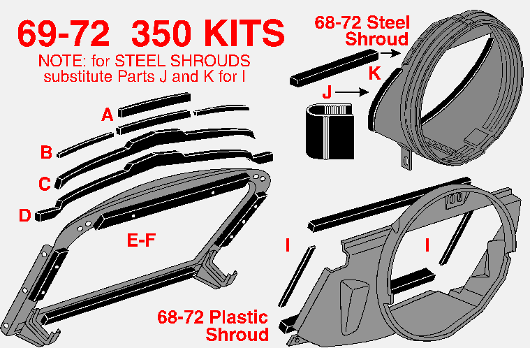 69-72 350 PLASTIC FAN SHROUD SEAL 4 PIECE SET with PSA