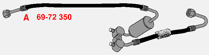 69-72 350 AIR CONDITION MUFFLER & HOSES Includes crimped on 1/2" and 5/8" freon hoses with fittings and hose protector.