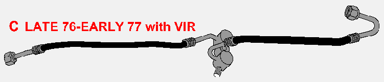 | LATE 76-EARLY 77 COMPRESSOR FITTING & HOSES use with VIR Valve EARLY 76 HOSES use with a 12" long compressor, i.e. A6 design. LATE 76 HOSES used with an 8" long compressor, i.e. R4 design. |